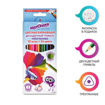 • Карандаши цветные с двухцветным грифелем ЮНЛАНДИЯ "МОРСКИЕ ЖИТЕЛИ" - незаменимый помощник в создании эскизов и набросков для начинающих художников. Яркие цвета и необычный грифель порадуют как детей, так и их родителей.