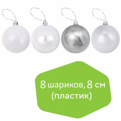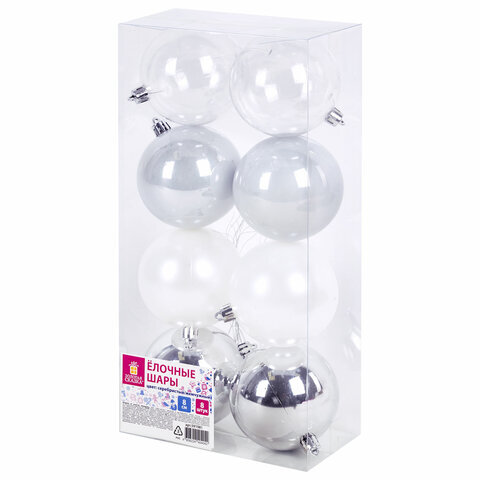 Шары ёлочные 8 шт., 8 см, "Eden Colors", пластик, цвет: серебристый/жемчужный, ЗОЛОТАЯ СКАЗКА, 591981
