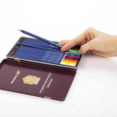 | Особенности | высокая светостойкость цветов, легко затачиваются, легко размываются влажной кистью, ударопрочный грифель |