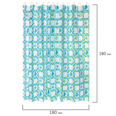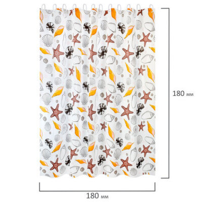 Шторка для ванной PEVA, 180х180 см, кольца в комплекте, 3 дизайна ассорти, МОРЕ, PRIMILA (ПРИМИЛА), 700074