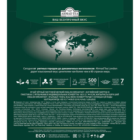 Чай AHMAD "English Breakfast" черный, 100 пакетиков в конвертах по 2 г, 600i-08