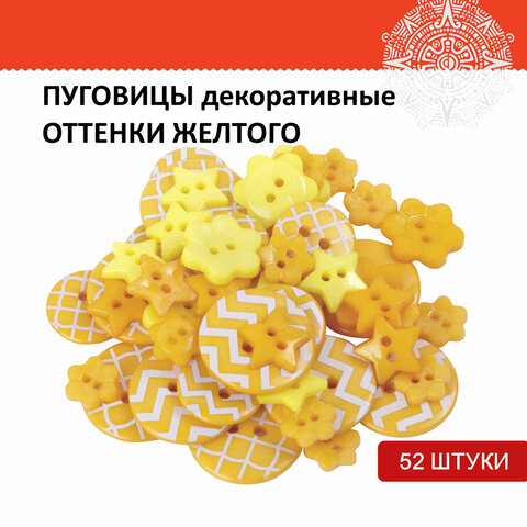 Пуговицы декоративные "Оттенки желтого", пластик, 52 шт., ассорти, ОСТРОВ СОКРОВИЩ, 661406