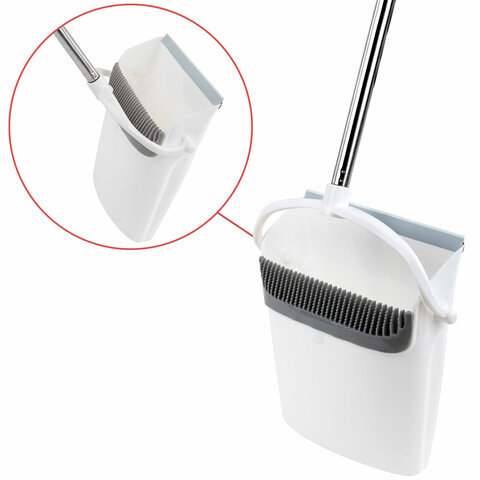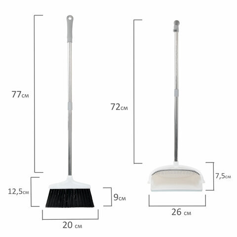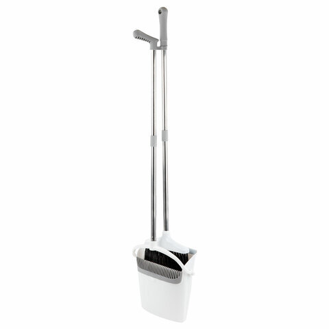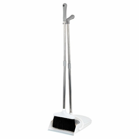 Совок для мусора КОМПЛЕКТ щетка + 2 рукоятки по 77 см металлические разборные, бело-серый, колорбокс, LAIMA, 608947