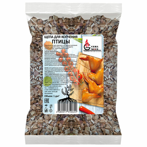 Щепа для копчения птицы "Грильвуд" – натуральный материал для горячего и холодного копчения. Предназначена для копчения и ароматизации курицы и других видов птицы.