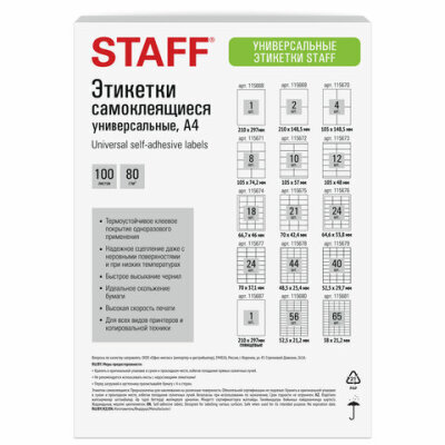 «АЛГОРИТМ»| Количество этикеток на листе | 65 шт. |