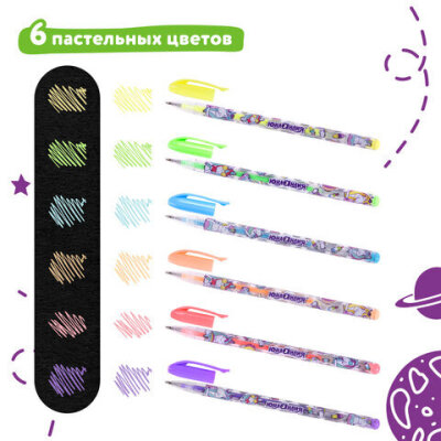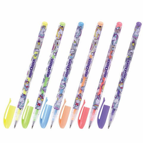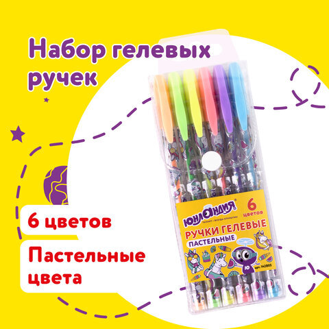 Ручки гелевые ЮНЛАНДИЯ, НАБОР 6 ЦВЕТОВ, ПАСТЕЛЬ, корпус с печатью, узел 0,7 мм, линия письма 0,5 мм, 142803
