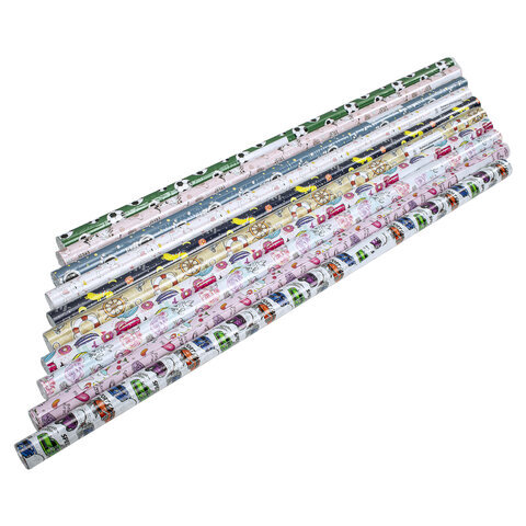 Бумага упаковочная подарочная мелованная "For Kids", 70x100 см, 10 дизайнов ассорти, ЗОЛОТАЯ СКАЗКА, 591918