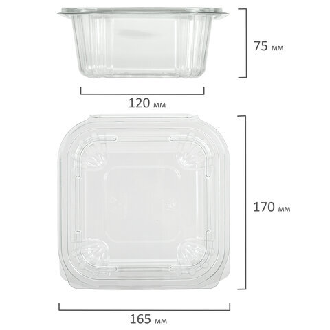 Одноразовый контейнер квадратный 1000 мл С КРЫШКОЙ ЮП-РКСП, КОМПЛЕКТ 300 шт., прозрачный ПЭТ, ЮУПМ6015