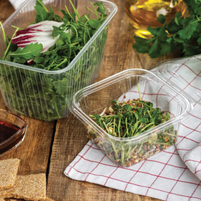 Комплект квадратных одноразовых контейнеров объемом 1000 мл с крышкой.