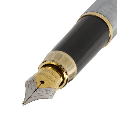 Ручка подарочная перьевая BRAUBERG "Brioso", СИНЯЯ, корпус серебристый с золотистыми деталями, 143464
