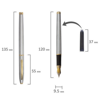 BRAUBERG "BRIOSO" – это стильная и удобная перьевая ручка, которая не только порадует своего владельца, но и станет отличным подарком. Картридж с чернилами находится внутри корпуса.