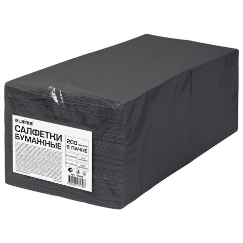 Салфетки бумажные 2-х слойные, 33x33 см, 200 штук в упаковке, 1/4 сложение, LAIMA, черные, 116660