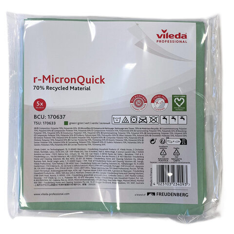 Салфетка микроволоконная VILEDA "МикронКвик", КОМПЛЕКТ 5 шт., микроволокно, зеленые, 38х40 см, 170637