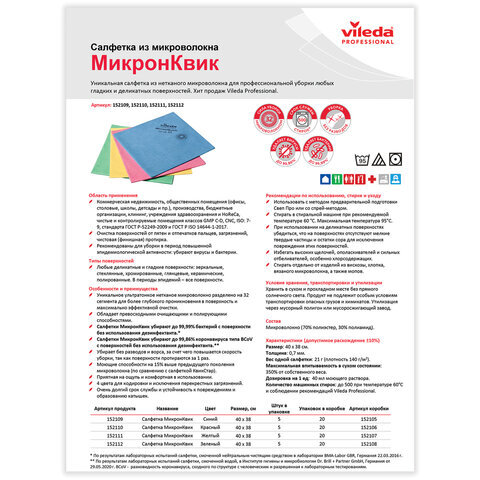 "КвикСтар Микро" является уникальной, рассчитанной на долгий срок службы салфеткой из микроволокна, которая разработана для экономии времени, протирки без разводов и ворса. Идеальная салфетка для уборки методом предварительной подготовки.