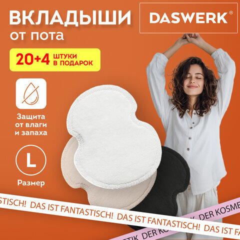 Вкладыши от пота, прокладки для подмышек, 24 шт., 3 цвета: белый / бежевый / черный, размер L, DASWERK (ДАСВЕРК), 609987
