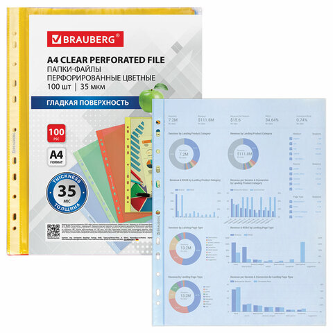 Цветные папки-файлы BRAUBERG – идеальное решение для упорядочивания документов. Они подходят для папок с любым кольцевым механизмом или скоросшивателем.