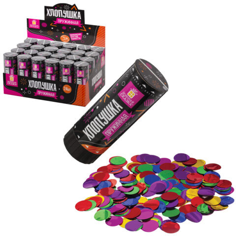 Хлопушка пружинная ЗОЛОТАЯ СКАЗКА 11 см, фольга, круги, ассорти, 591468