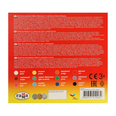 Пластилин классический ГАММА "Мультики", 12 цветов, 240 г, со стеком, картонная упаковка, 280018/281018