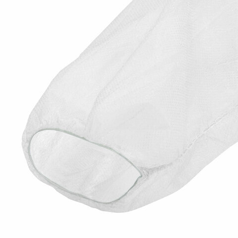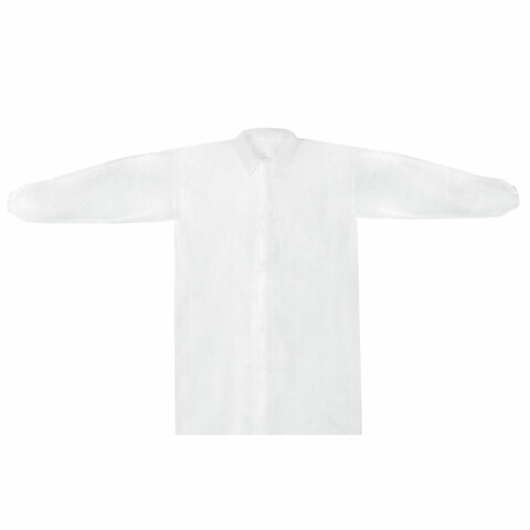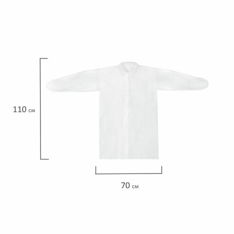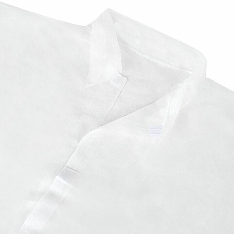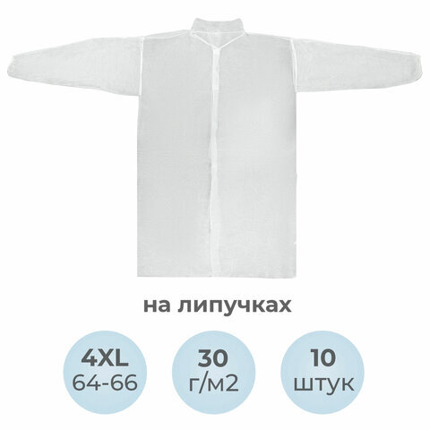Халат одноразовый белый на липучках КОМПЛЕКТ 10 шт., 4XL, 64-66 размер, 110 см, рукав на резинке, 30 г/м2, ОПТИТРЕЙД
