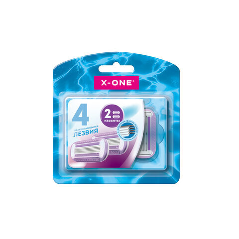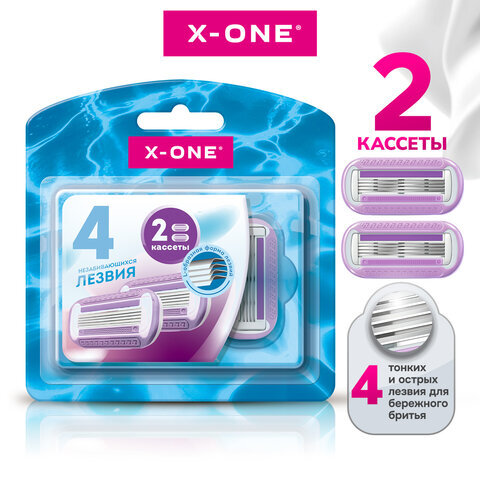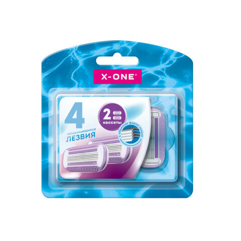 Кассеты для бритвенного станка многоразового женского, 4 лезвия, 2 кассеты, X-ONE (ИКС-УАН), 700019