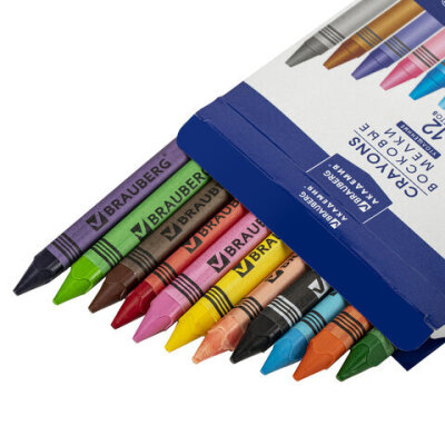 Восковые мелки BRAUBERG идеально подходят для детского творчества. Предназначены для рисования на бумаге любого типа, а также дереве, картоне и стекле. Не пачкают руки, благодаря индивидуальной бумажной обертке каждого мелка.
