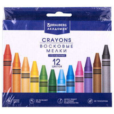 Восковые мелки трехгранные утолщенные BRAUBERG "АКАДЕМИЯ", НАБОР 12 цветов, 227287