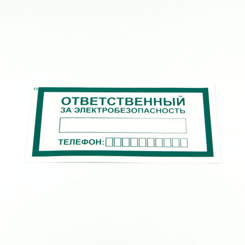 Знак "Ответственный за электробезопасность", КОМПЛЕКТ 10 штук, 100х200 мм, пленка, А31