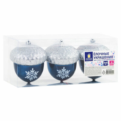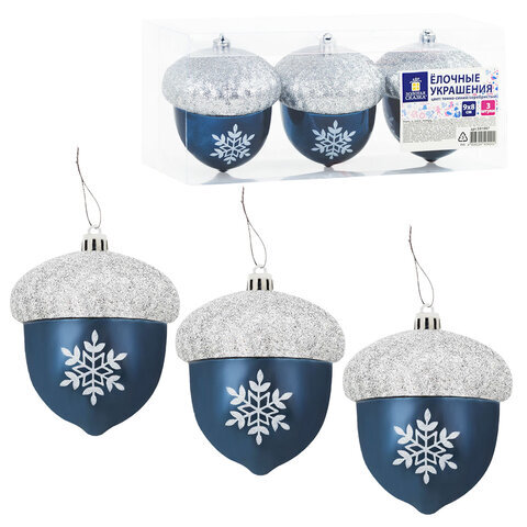 Украшение ёлочное "Желуди" 3 шт., 9х8 см, пластик, цвет: темно-синий / серебро, ЗОЛОТАЯ СКАЗКА, 591997
