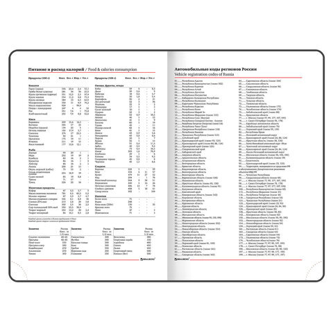 | Особенности | закладка-ляссе, комбинированная обложка, перфорация уголков, скругленные углы, справочная информация |