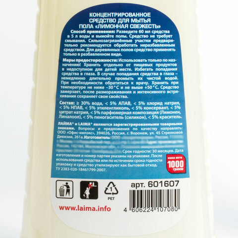 Средство для мытья пола LAIMA "PROFESSIONAL" обладает высоким уровнем чистящей способности и придаёт блеск обработанным поверхностям, создавая эффект защитной плёнки.