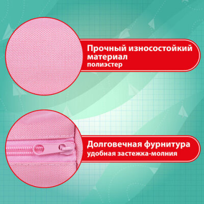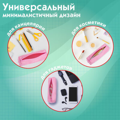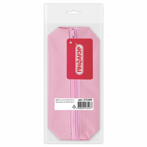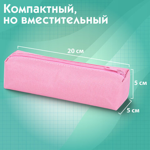 Пенал-тубус ПИФАГОР на молнии, ткань, пастельно-розовый, 20х5 см, 272260