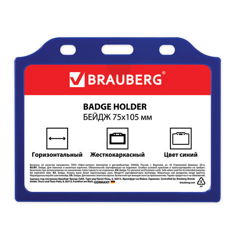 Горизонтальный бейдж BRAUBERG для именной карточки предназначен для идентификации сотрудников в компаниях, а также на семинарах, тренингах, презентациях и других мероприятиях.