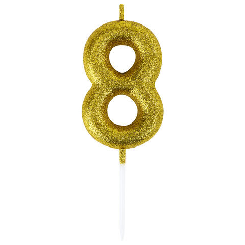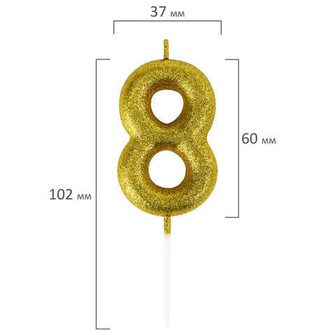 Свеча-цифра для торта "8" золотая с глиттером, 6 см, ЗОЛОТАЯ СКАЗКА, на шпажке, в блистере, 591421