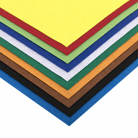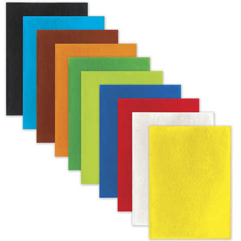 Цветной фетр МЯГКИЙ А4, 2 мм, 10 листов, 10 цветов, плотность 170 г/м2, ОСТРОВ СОКРОВИЩ, 660088