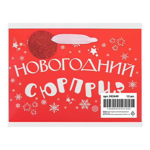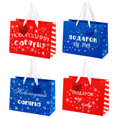 Пакет подарочный (1 шт.) новогодний, 27х11х20 см, "Новогодний подарок", ламинация, ассорти, ЗОЛОТАЯ СКАЗКА, 592449