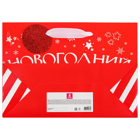 Подарочный новогодний пакет "Новогодний подарок" ЗОЛОТАЯ СКАЗКА – отличное решение для упаковки любого презента, которое позволит легко и со вкусом оформить выбранный подарок.