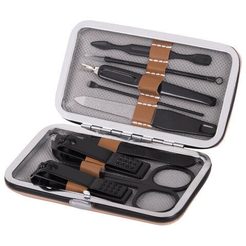 Универсальный набор для маникюра и педикюра 9 в 1 в футляре, MINI, бежевый, WBZ (ВБЗ), 609492
