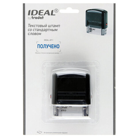 Штамп стандартный "ПОЛУЧЕНО", оттиск 38х14 мм, синий, TRODAT IDEAL 4911 DB-1.1, 161486