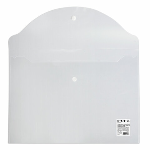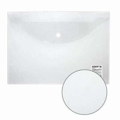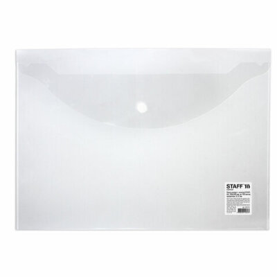 Папка-конверт с кнопкой STAFF, А4, до 100 листов, прозрачная, 0,12 мм, 225173