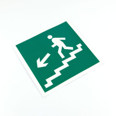 | Наименование знака | Направление к эвакуационному выходу по лестнице вниз, налево |
