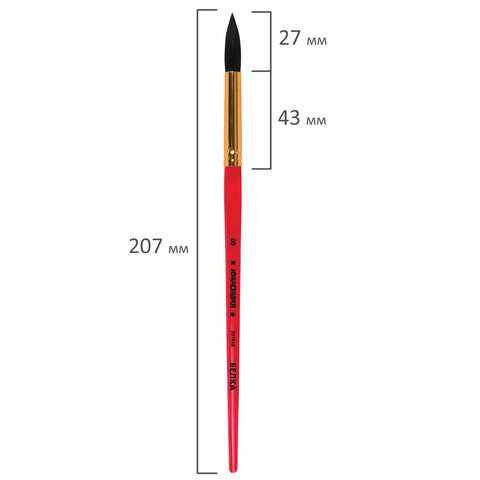 Кисть БЕЛКА, круглая, № 8, цветная ручка, ЮНЛАНДИЯ, 201058
