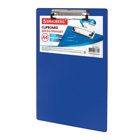 Доска-планшет BRAUBERG "NUMBER ONE" с прижимом А4 (228х318 мм), картон/ПВХ, СИНЯЯ, 232217