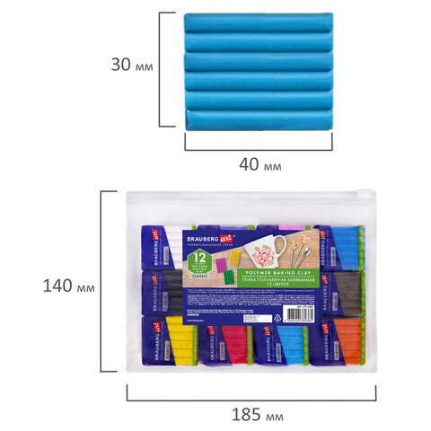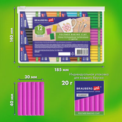 Глина полимерная запекаемая, НАБОР 12 цветов по 20 г, в пакете, BRAUBERG ART CLASSIC, 271162