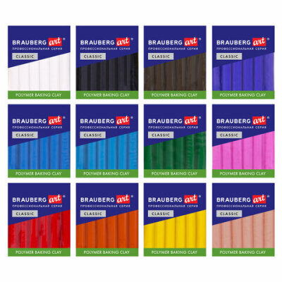 Глина полимерная запекаемая BRAUBERG ART CLASSIC - профессиональная серия. Предназначена для лепки и моделирования, создания игрушек, украшений, предметов интерьера, сувениров.