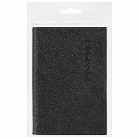 Обложка для паспорта натуральная кожа флоттер, "PASSPORT", кожаный уголок, черная, BRAUBERG, 238192