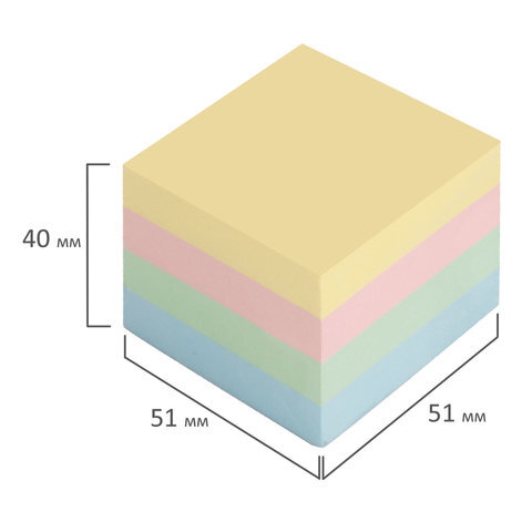 Блок самоклеящийся (стикеры), BRAUBERG, ПАСТЕЛЬНЫЙ, 51х51 мм, 400 листов, 4 цвета, 122858