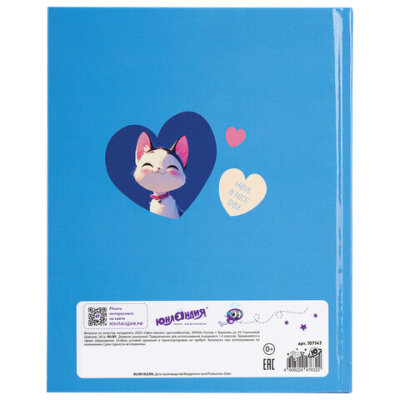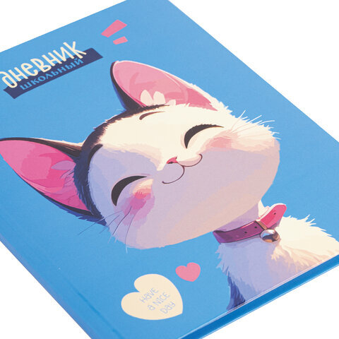Дневник 1-4 класс 48 л., твердый, ЮНЛАНДИЯ, глянцевая ламинация, с подсказом, "Котик", 107147