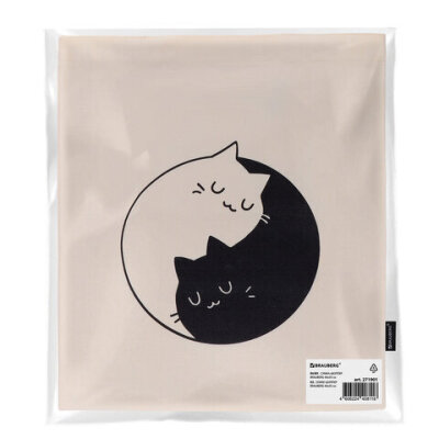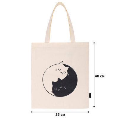Сумка шоппер BRAUBERG PREMIUM, канвас, 40х35 см, на кнопке, карман, бежевый, "Yin-yang", 271901
