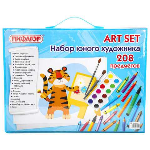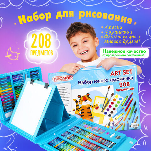 Набор ЮНОГО ХУДОЖНИКА "Тигренок" для рисования и творчества с мольбертом ПИФАГОР, 208 предметов, 664632