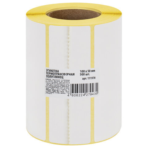 Этикетки термотрансферные, ПОЛУГЛЯНЕЦ, 100х50 мм, 500 этикеток в ролике, 111978